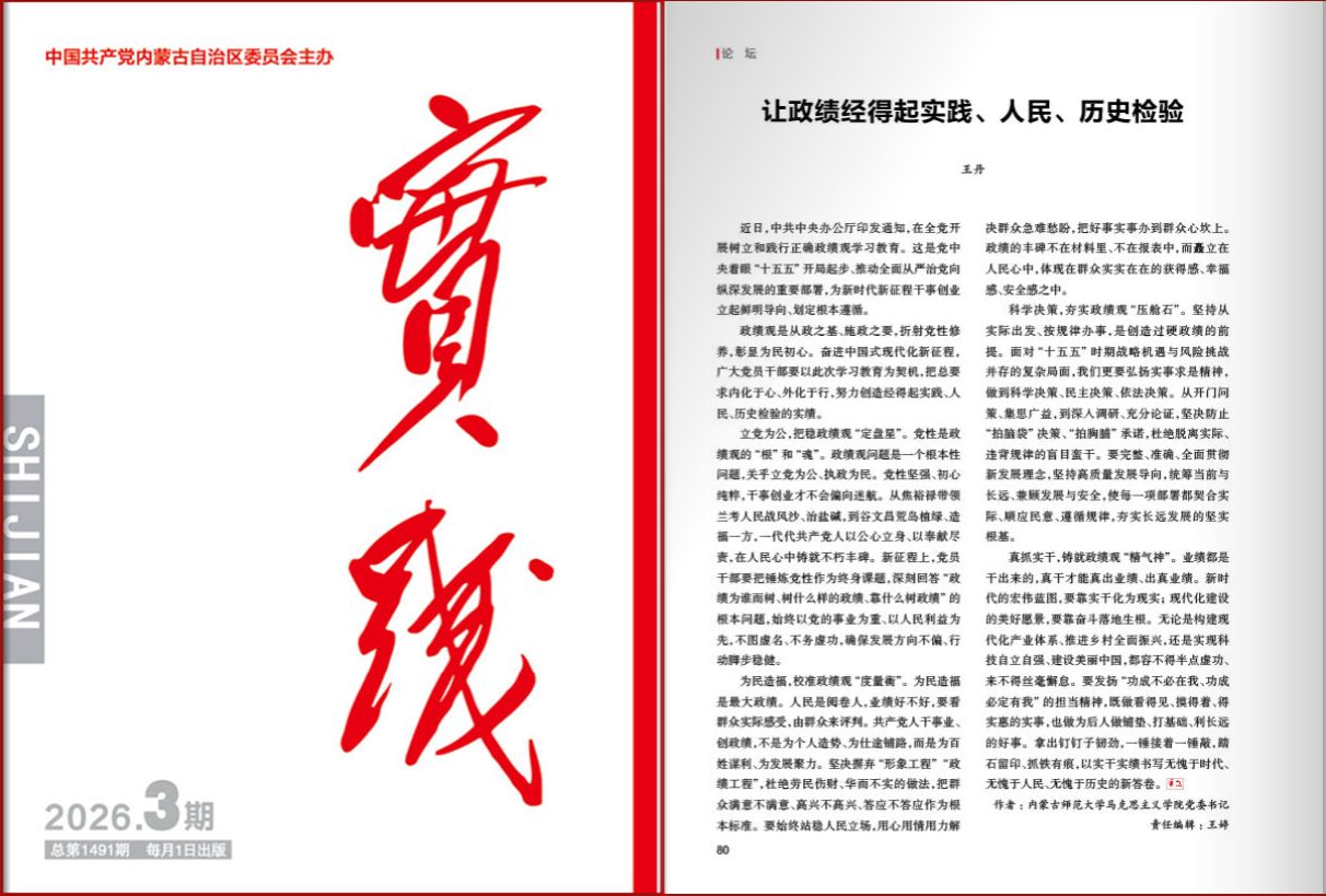 《实践》杂志2026年第3期刊发世界杯官网马克思主义学院党委书记王丹的文章《让政绩经得起实践、人民、历史检验》