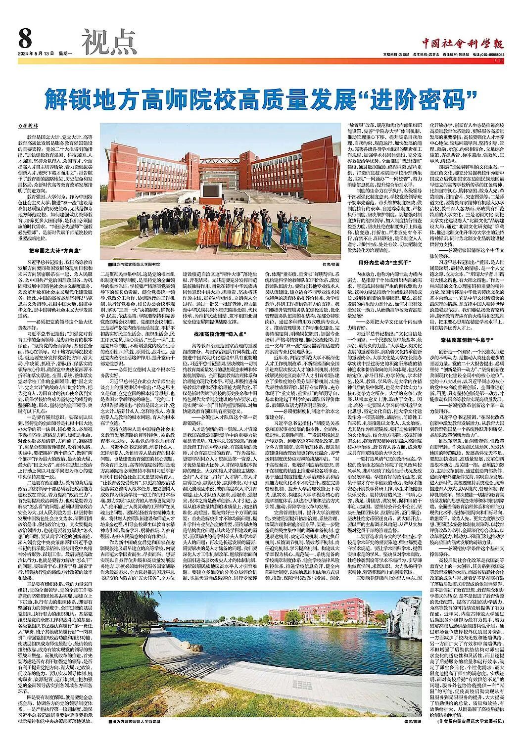 《中国社会科学报》5月13日第8版全文刊载世界杯官网党委书记李树林署名文章《解锁地方高师院校高质量发展“进阶密码”》,全文如下。