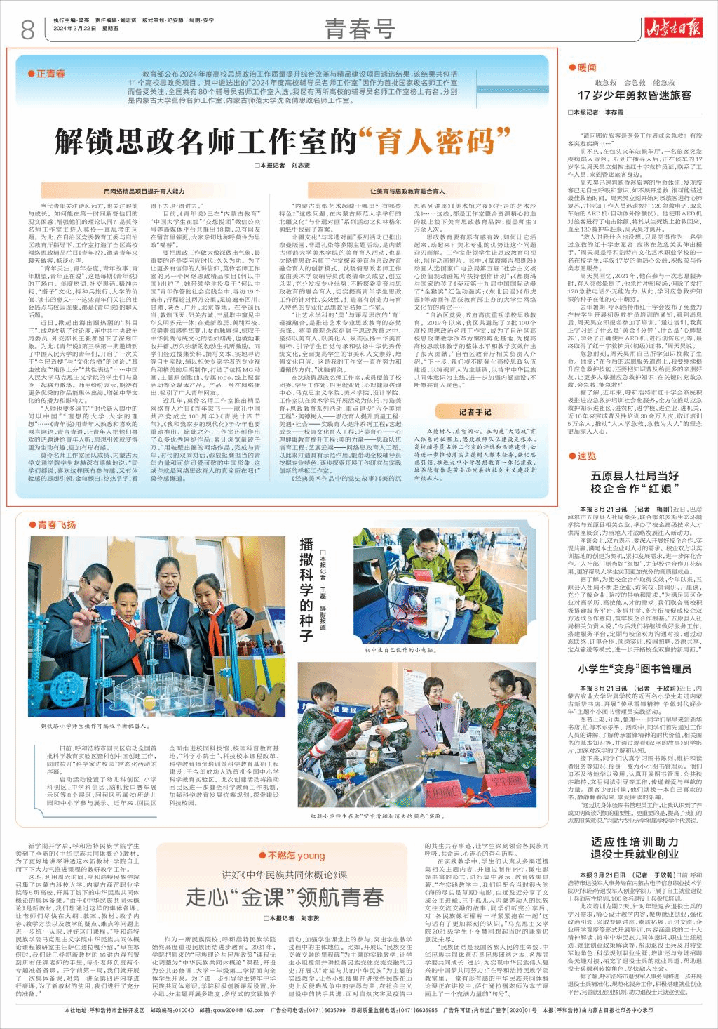 莫伶名师工作室团队成员、内蒙古大学交通学院学生赵赫深有感触地说:“同学们都说,喜欢这样既有参与感、又有体验感的思想引领,金句频出,热热乎乎,看得下去、听得进去。”