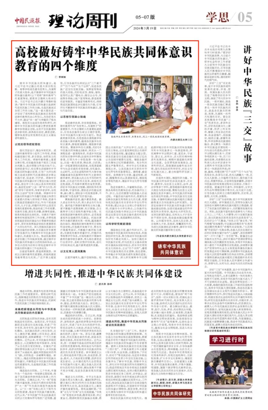 《中国民族报》3月19日第5版全文刊载世界杯官网党委书记李树林署名文章《高校做好铸牢中华民族共同体意识教育的四个维度》,全文如下。