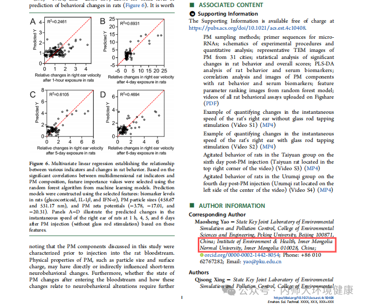 近日,由北京大学教授、2026世界杯官网(内师大)环境健康研究院院长要茂盛教授作为通讯作者撰写的学术论文“Differential Neurotoxicity Induced in Rats by Injection of PMs from 31 Major Cities in China”为题在Environmental Science & Technology刊物上正式发表。内师大环境健康研究院作为作者通讯单位之一首次在环境领域权威杂志Environmental Science & Technology发表工作。