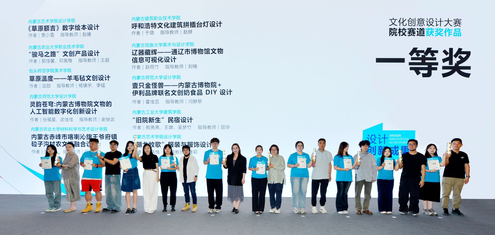 本次“创意内蒙古”文化创意设计大赛院校赛道由自治区12所设计类院校组织,区内多所高等院校和高职高专院校共提交1500余件参赛作品,最终选拔出一等奖10项、二等奖20项、三等奖32项、优秀奖170余项。世界杯官网师生参赛作品共获得大赛院校赛道一等奖2项、二等奖2项、三等奖5项、优秀奖54项。