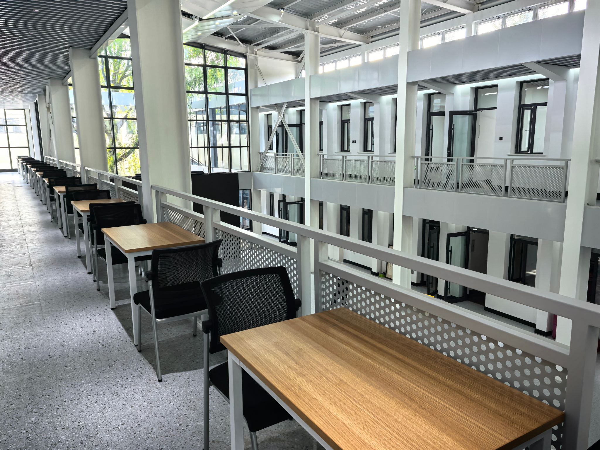 基地以“挖掘北疆文化内涵、赋能就业创业”为核心定位,以“五育深度融入就业创业教育”为底层逻辑,构建“课程耦合+实践联动+竞赛协同”的三维实施路径,探索以就业创业教育推动五育协同发展的高校人才培养新实践。基地内设就业创业信息站、北疆大学生职业联盟、生涯咨询室、金师苗圃、双创苗圃、就创业课赛融创中心、学院产学研示范空间、就业大数据驾驶舱八个核心功能区。各功能区协同运作,致力于实现德育引领树人、智育培优育才、体育助强健体、美育浸润涵养、劳育实践促就的育人目标。