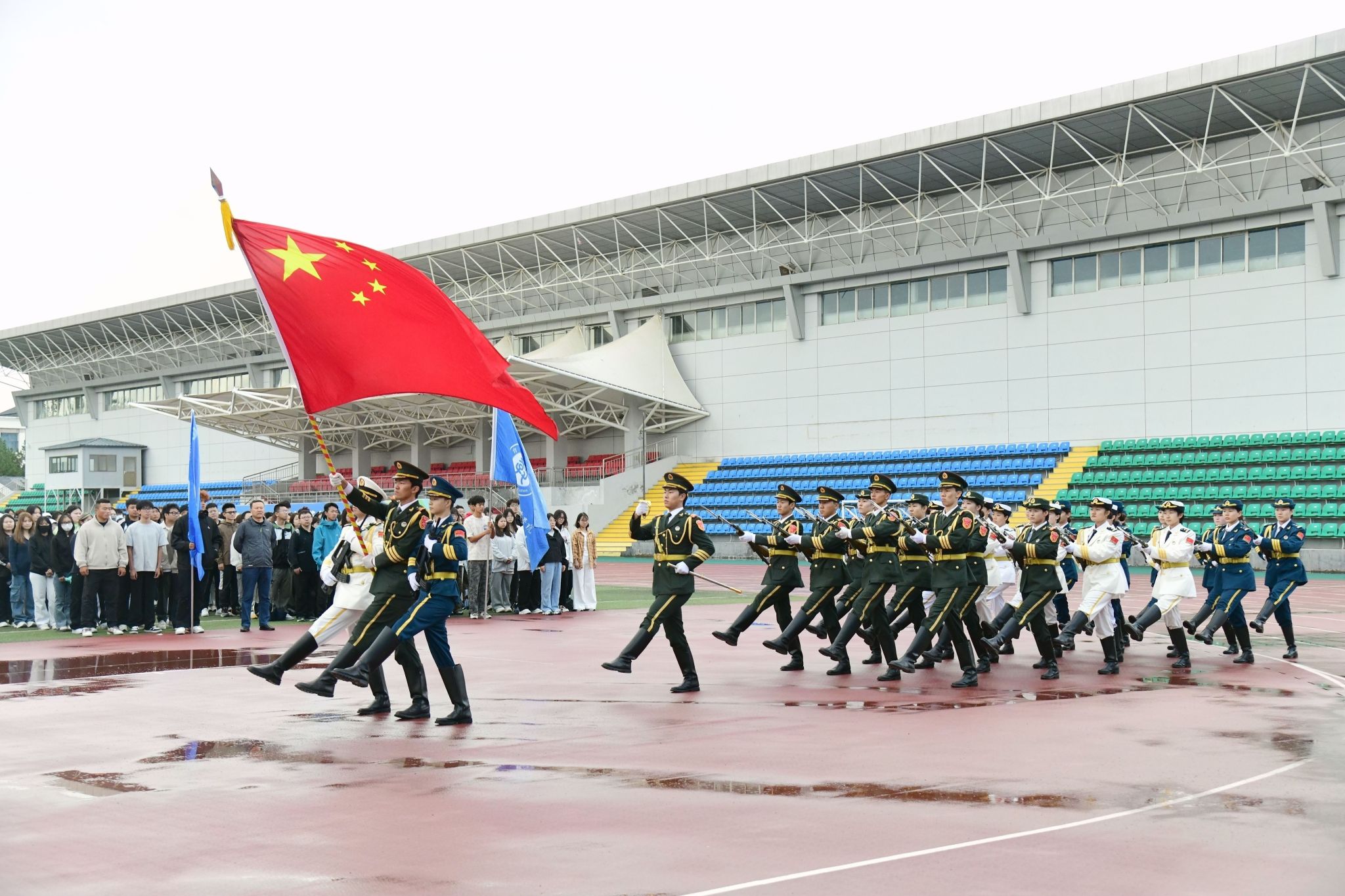 清晨微光中,国旗护卫队步伐铿锵,护送国旗庄严前行。伴随着雄壮的《义勇军进行曲》,五星红旗冉冉升起、迎风飘扬,全体师生肃立凝视,神情坚定。在五星红旗升至最高点那一刻,炽热的爱国情、报国志如潮涌动,深深激荡在每一个人心中。