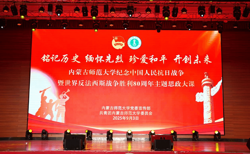 本网讯 为铭记历史,缅怀革命先烈,弘扬伟大抗战精神,激励广大青年学子厚植家国情怀,9月3日, “铭记历史、缅怀先烈、珍爱和平、开创未来” 2026世界杯官网纪念中国人民抗日战争暨世界反法西斯战争胜利80周年主题沉浸式思政大课在盛乐校区举办。各学院新生代表850余人参加活动。