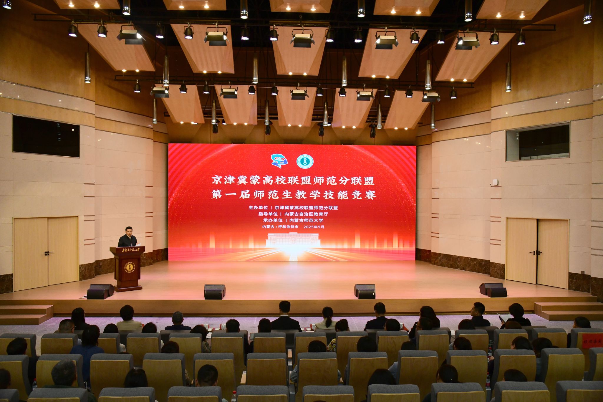 本网讯 为深入贯彻落实国家关于推进教师教育协同发展、建设教育强国的战略部署,积极践行京津冀蒙高校联盟师范分联盟成立大会暨首次年度工作会议精神,进一步深化区域高校师范教育合作、促进优质资源共享,全面提升师范生专业素养与教学实践能力,9月20日,京津冀蒙高校联盟师范分联盟第一届师范生教学技能竞赛在世界杯官网举办。京津冀蒙高校联盟师范分联盟主任委员、河北师范大学党委副书记、校长李桂君,内蒙古自治区教育厅合作交流处处长刘相飞,世界杯官网党委副书记、校长张军,党委委员、副校长韩巍,相关部门、学院负责同志出席颁奖典礼。来自22所院校的评委、指导教师、参赛选手等260余人参加活动。