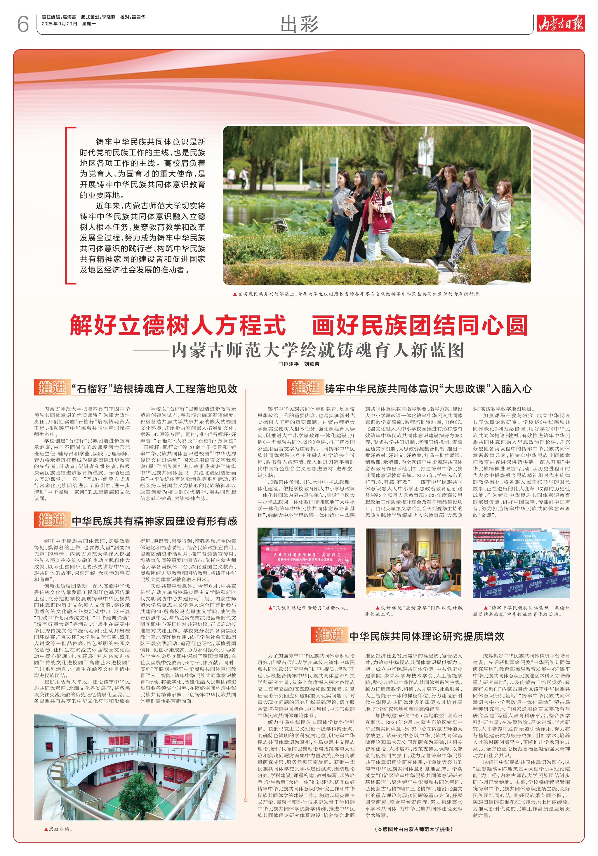 《内蒙古日报》2025年9月29日第6版以《解好立德树人方程式 画好民族团结同心圆——2026世界杯官网绘就铸魂育人新蓝图》为题,报道世界杯官网全面贯彻铸牢中华民族共同体意识主线相关工作。