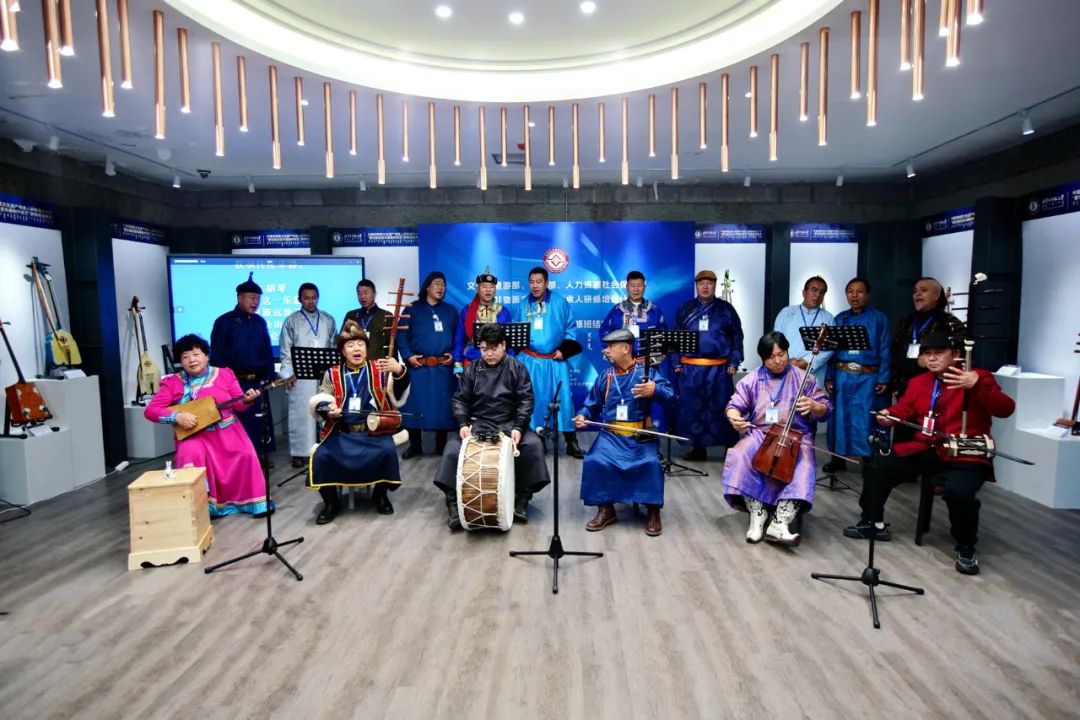 结业典礼上,研修班师生们用新制作的乐器共同演奏演唱了《萨吾尔登》《苏武牧羊》《陶格陶》《万马奔腾》《民间乐器赞》等乐曲。