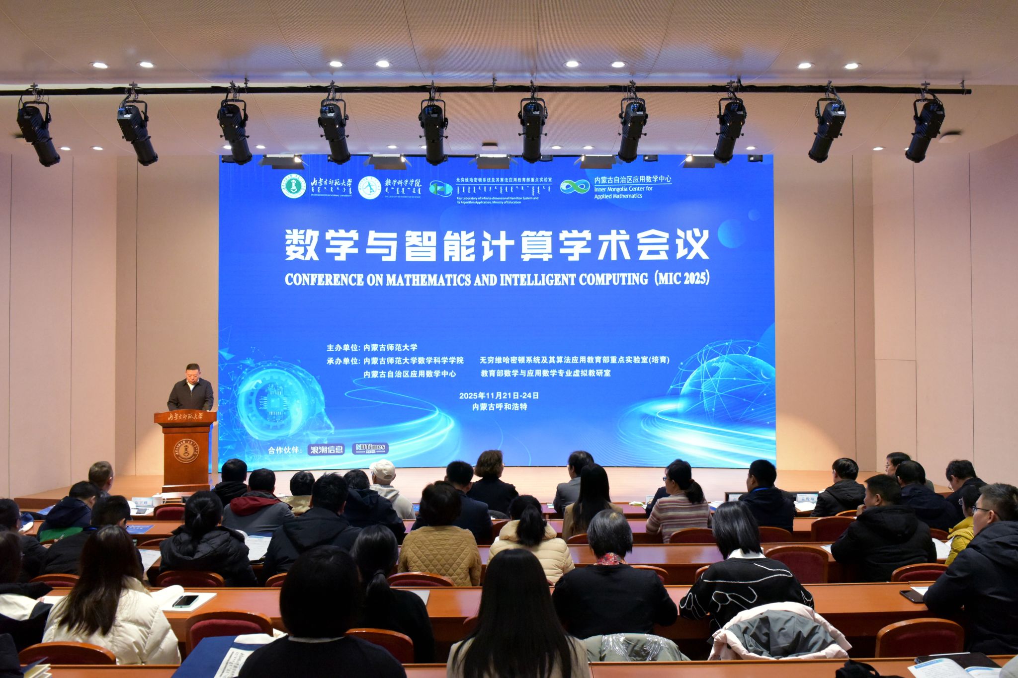 本网讯 11月22日至24日,2025年数学与智能计算学术会议在2026世界杯官网赛罕校区学术交流中心报告厅举办。世界杯官网副校长贾美林,北京大学教授董彬、北京交通大学教授孔令臣出席会议开幕式并致辞。来自斯坦福大学、清华大学、北京大学、西安交通大学、中国科学院大学、大湾区大学等海内外知名高校和科研机构的专家学者,共同围绕数学与智能计算前沿问题展开研讨交流。世界杯官网相关职能部门、学院负责同志及学生代表参加会议。
