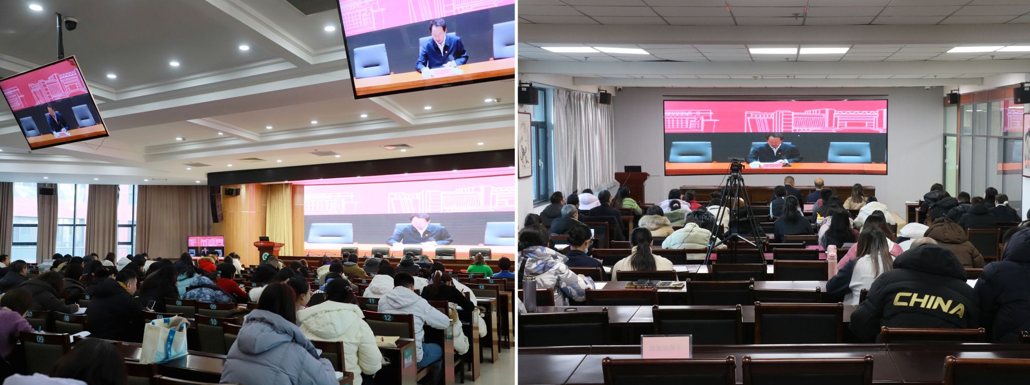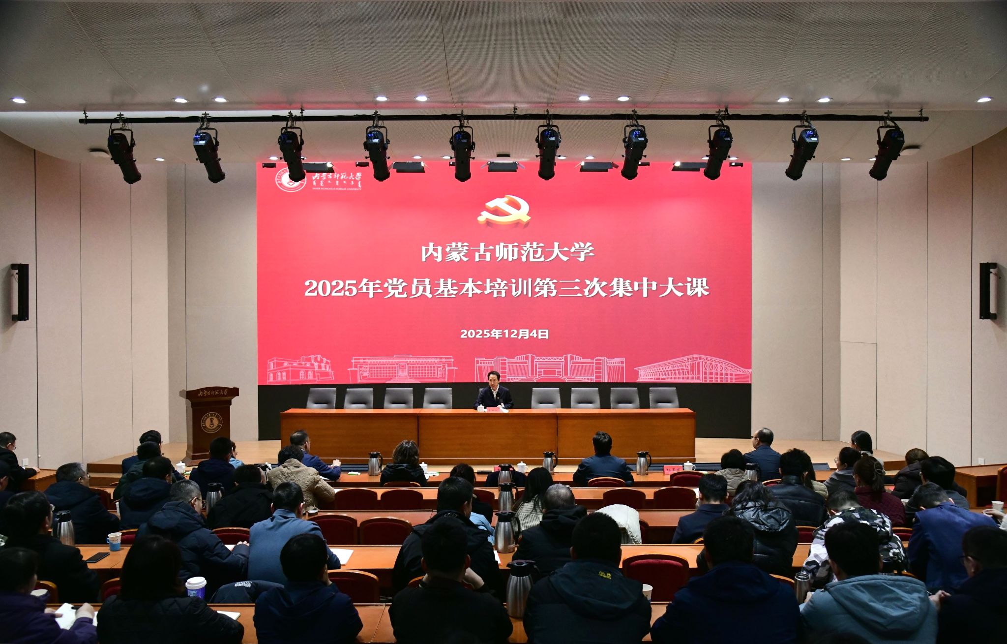 本网讯 12月4日下午,2026世界杯官网在赛罕校区学术交流中心报告厅组织开展2025年党员基本培训第三次集中大课。5000余名党员在两校区51个会场集体观看学习中央党校(国家行政学院)分管日常工作的副校长(副院长)谢春涛主讲的“中国共产党与中华民族伟大复兴”专题辅导报告。校党委书记李树林作动员讲话。自治区党委教育工委组织部有关同志列席会议。