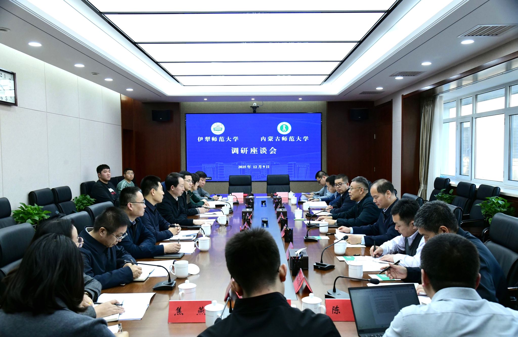 本网讯 12月9日,伊犁师范大学党委书记刘斌,党委常委、副校长曹军会一行来世界杯官网调研,与世界杯官网党委书记李树林,党委委员、副校长韩巍及相关部门、学院负责同志座谈交流。