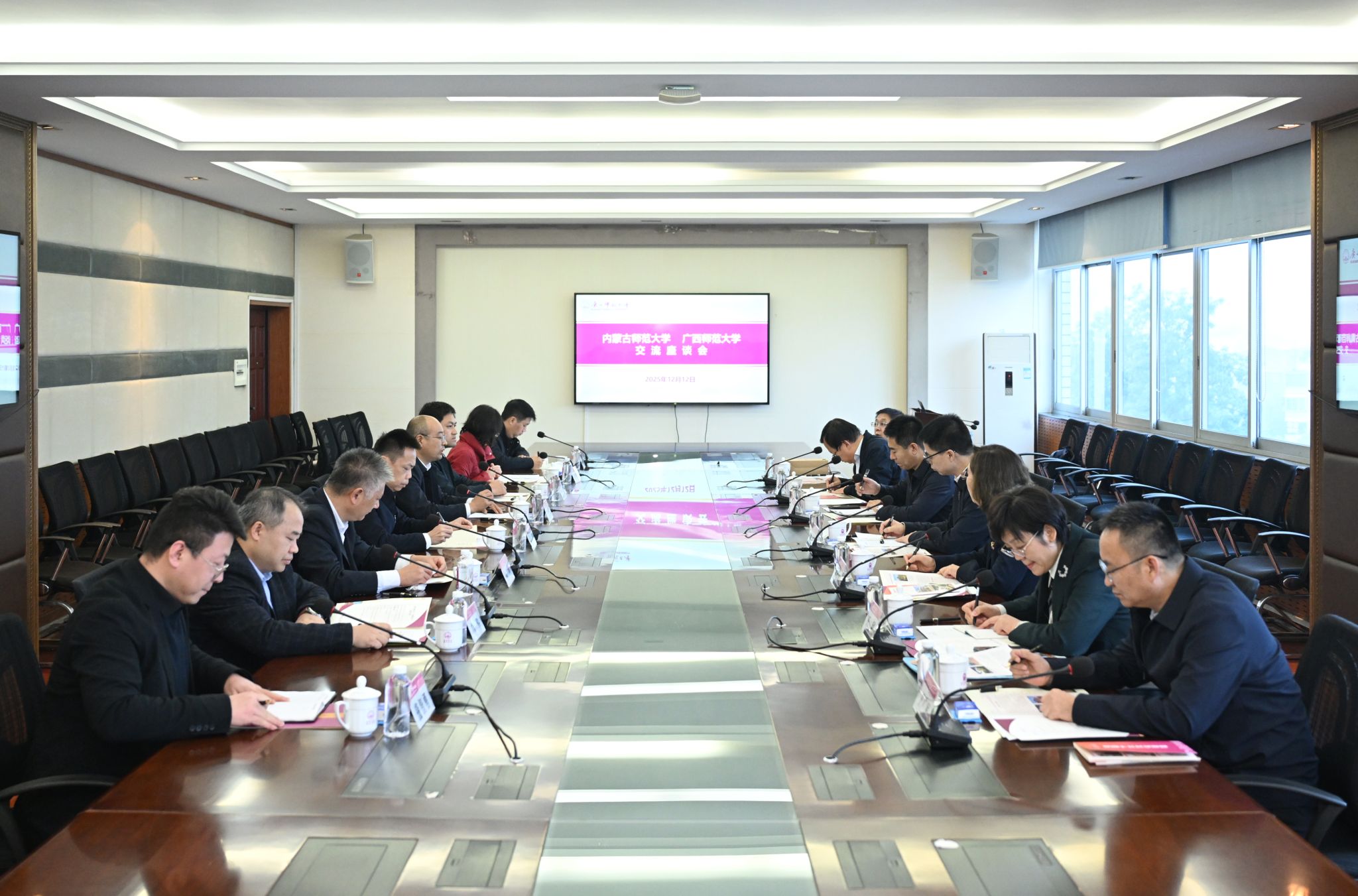 在广西师范大学,张军一行会见了党委书记贺祖斌,并与党委常委、副校长林国庆及相关部门负责同志进行座谈交流。作为同属师范类院校的兄弟高校,双方聚焦教育教学改革、教师专业发展以及服务基础教育高质量发展等内容进行深入交流讨论,并就将铸牢中华民族共同体意识教育深度融入办学治校全过程分享了经验。双方期待能够在师范生联合培养、教育资源共建共享、推动高等教育与基础教育协同发展等方面开展更深层次、更广范围的实质性合作,为区域经济社会发展提供人才智力支撑。