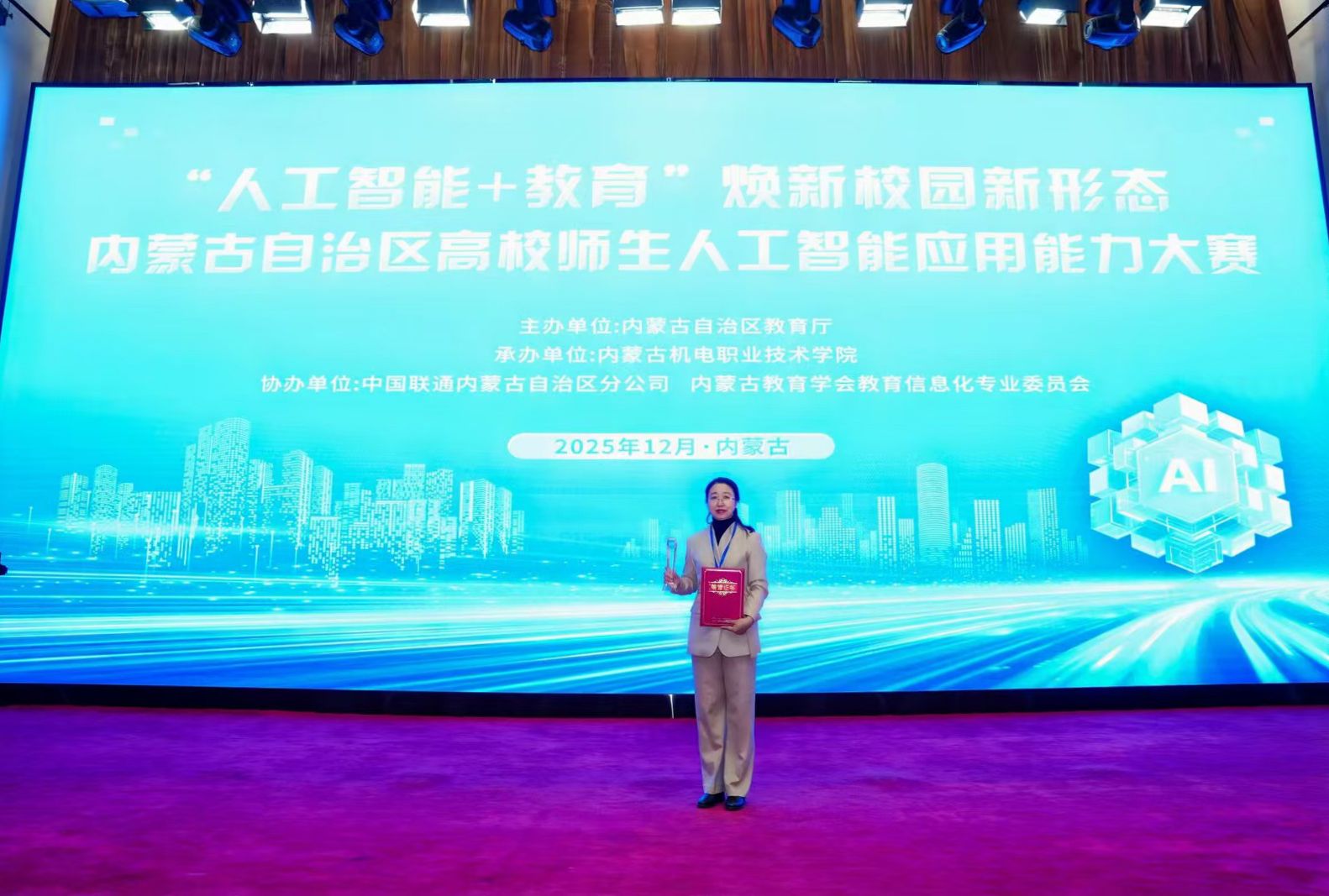 本网讯 近日,由内蒙古自治区教育厅主办、内蒙古机电职业技术学院承办的内蒙古自治区首届高校师生人工智能应用能力大赛圆满落幕。世界杯官网师生荣获大赛一等奖1项、二等奖2项、三等奖1项。