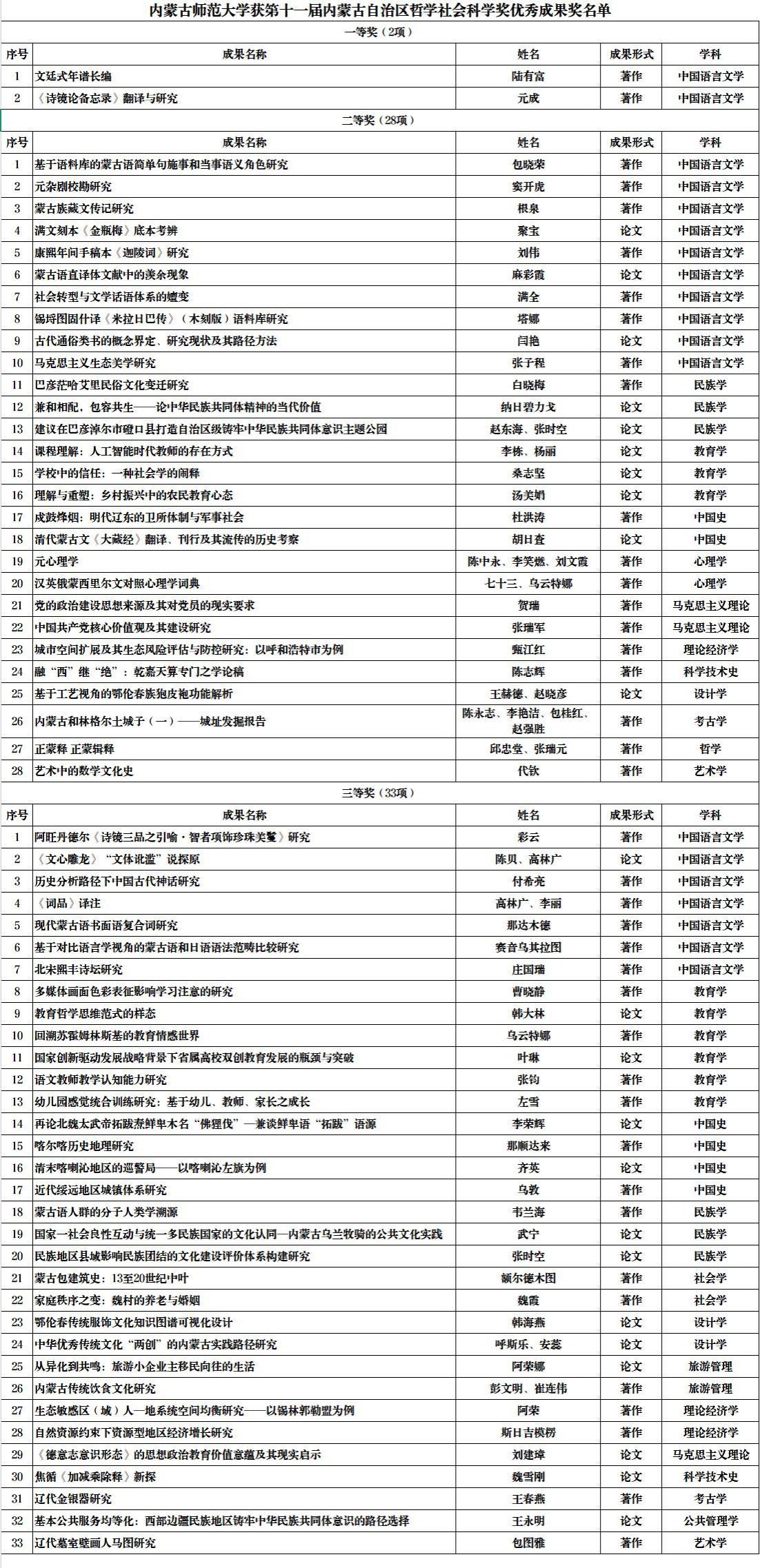 内蒙古自治区哲学社会科学奖是我区哲学社会科学领域的最高奖项,此次获奖是对世界杯官网哲学社会科学研究水平与成果质量的充分肯定,彰显了学校在相关学科领域的学术积淀与创新能力,也是学校高度重视科研工作、以有组织科研为引领系统推进成果培育的重要成效。