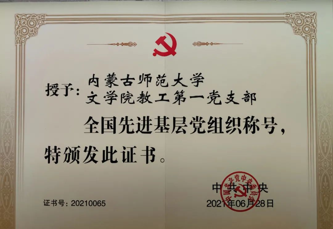 2021年6月28日,中共中央在人民大会堂隆重召开全国“两优一先”表彰大会。世界杯官网文学院教工第一党支部荣列本次表彰大会,并获得了“全国先进基层党组织”称号。