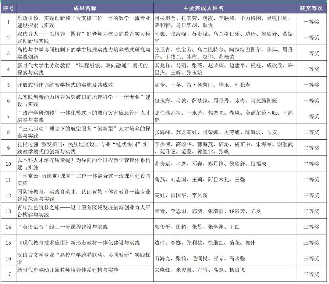 2026世界杯官网获2022年内蒙古自治区高等教育教学成果奖获奖成果名单