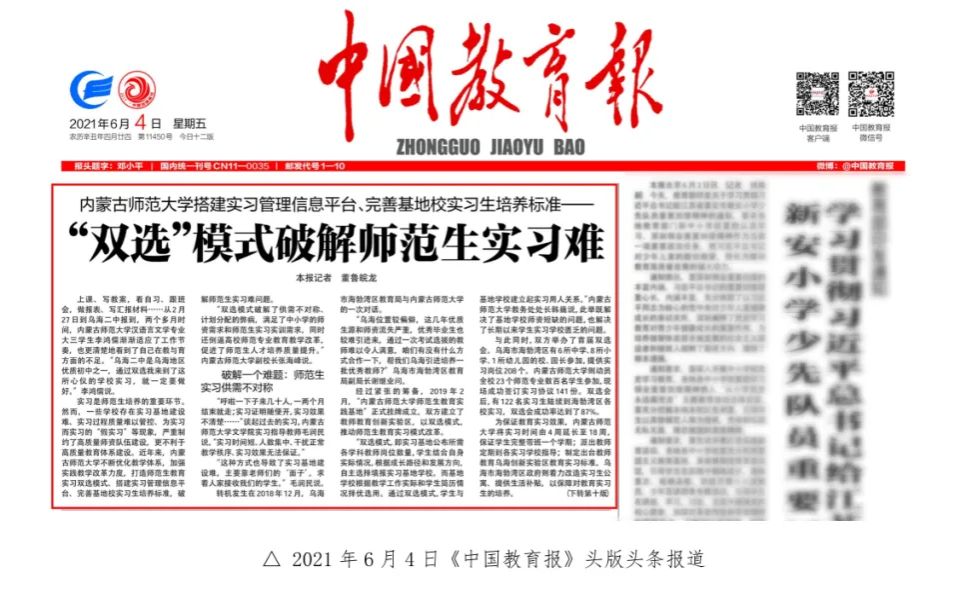 创新构建“高校—政府—中小学”协同育人机制,打造教师教育创新实验区,在教育实习中首创“双选育人”模式。连续举办八届“双选会”,累计提供15759个岗位,派出实习生1.4万余人次,建成区内外优质教育实践基地435所,该成果于2021年6月被《中国教育报》头条专题报道并入选自治区改革优秀案例。聚焦铸牢中华民族共同体意识大中小学一体化教学研究,实现高等教育与基础教育的双向赋能。实践教学实现了从支撑培养到引领发展的跃升,为全面提升人才核心竞争力提供了强大动能。