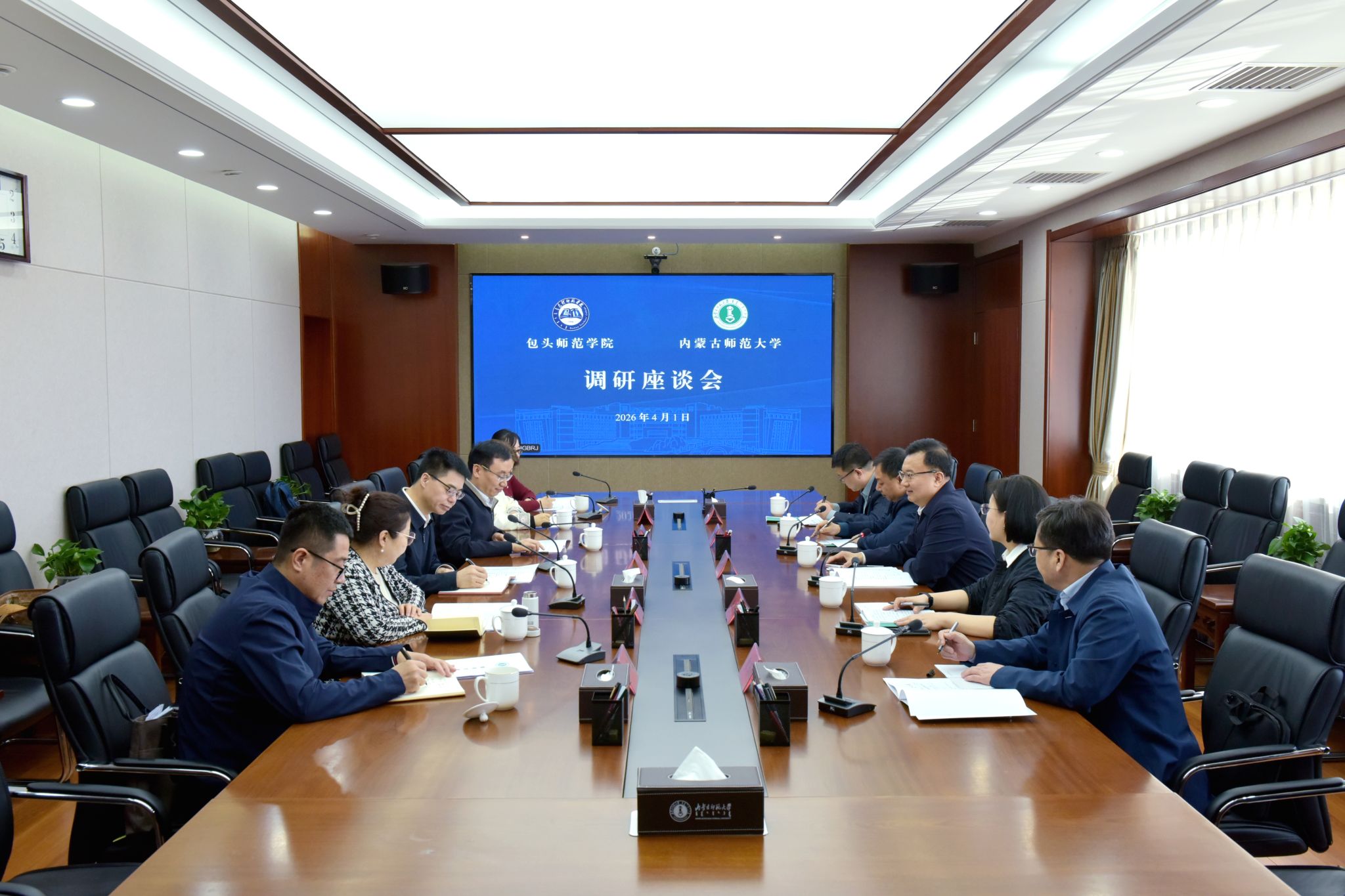 本网讯 4月1日,包头师范学院党委副书记、校长郭金虎一行来校调研,与世界杯官网党委副书记、校长张军,党委委员、副校长公茂果及相关部门、学院负责同志进行座谈交流。