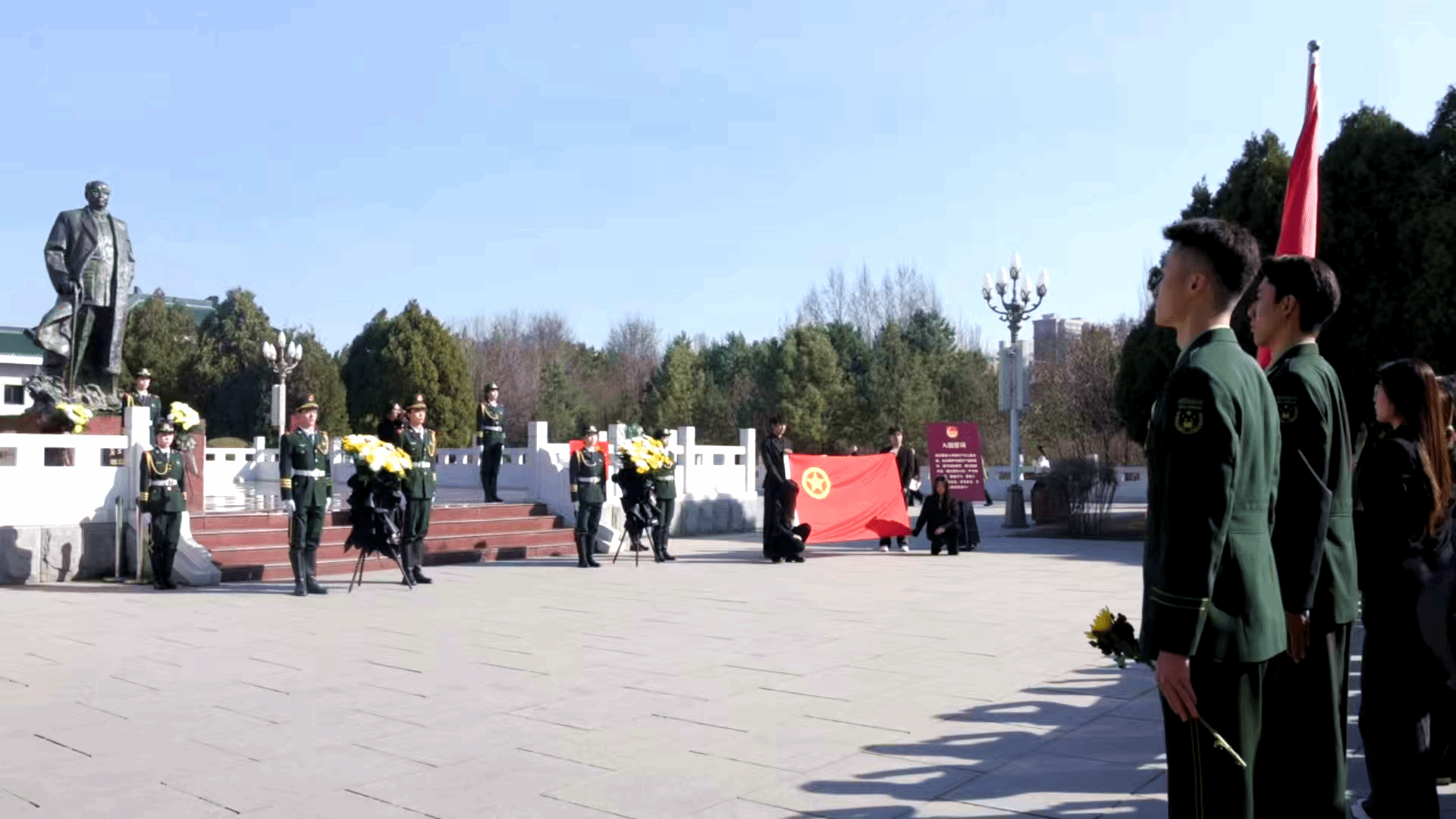 在庄重肃穆的氛围中,师生代表们神情凝重、步履沉稳,缓步上前敬献花篮,深切缅怀革命先烈。