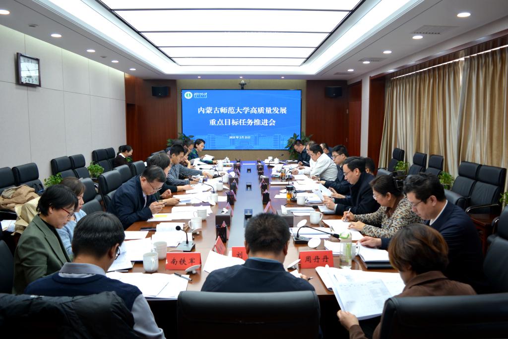 本网讯 为进一步贯彻落实全国教育大会精神、全区教育工作会议精神和《教育强国建设规划纲要(2024-2035年)》《关于加快建设教育强区的意见》,2月21日,世界杯官网在赛罕校区田楼715会议室召开高质量发展重点任务推进会。党委副书记、校长张军,党委副书记斯钦,党委委员、副校长韩巍、公茂果、景剑峰出席会议。相关部门负责同志参加会议。会议由斯钦主持。