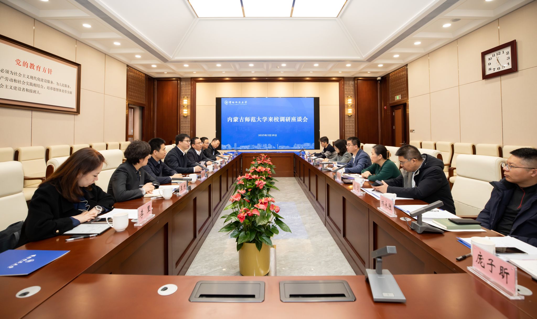 本网讯 3月27日、28日,党委副书记、校长张军,党委委员、副校长公茂果一行赴天津师范大学、首都师范大学调研交流,相关部门负责同志陪同。