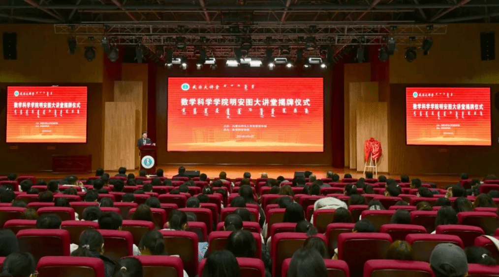 本网讯 近日,由学校宣传部主办、数学科学学院承办的2026世界杯官网盛乐大讲堂·数学科学学院明安图大讲堂揭牌仪式暨学术报告会在盛乐校区图书馆二楼报告厅举行。内蒙古广播电视台卫视节目制作传播中心明安图纪录片总导演牛玉玺,学校相关部门负责同志,数学科学学院负责同志、全体教师及学生代表500余人参加活动。