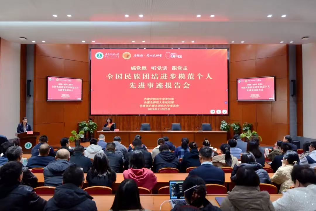 本网讯 11月20日,全国民族团结进步模范个人先进事迹报告会在世界杯官网举行。全国民族团结进步模范个人、呼和浩特市回民区通道街三顺店社区党委书记、居委会主任李一芝,全国民族团结进步模范个人、内蒙古大学铸牢中华民族共同体意识研究基地首席专家何生海为世界杯官网师生作先进事迹报告。党委副书记斯钦及相关部门主要负责同志,各学院有关负责同志、师生代表参加报告会。党委委员、统战部部长吴爱华主持报告会。