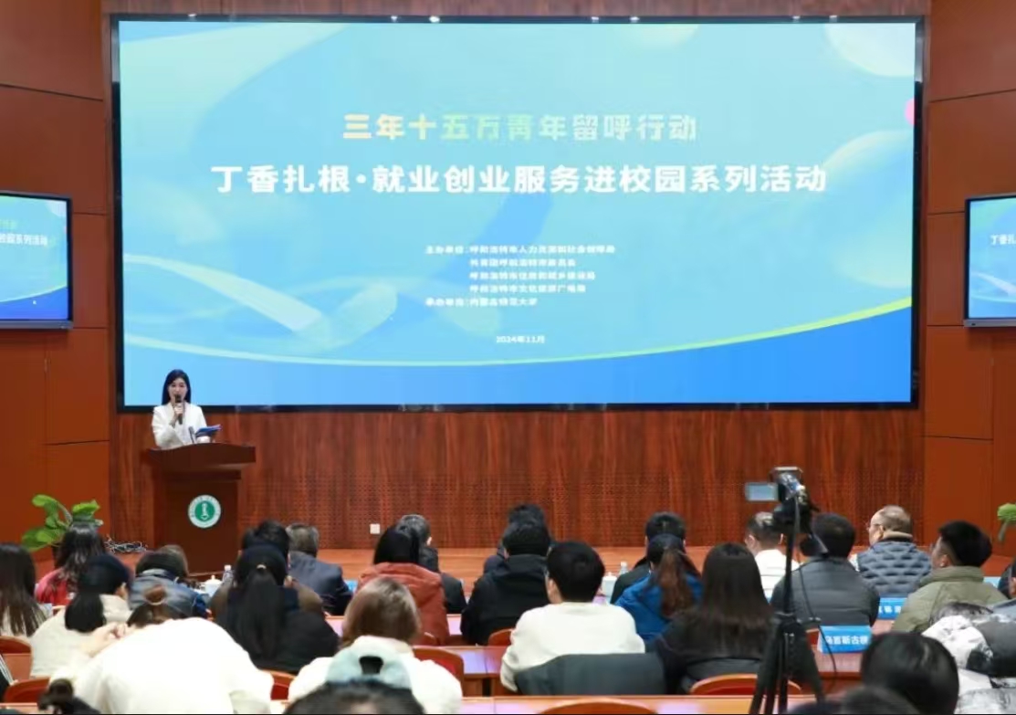 本网讯 为进一步促进大学生实现更加充分和高质量的就业与创业,支持呼和浩特市实施“十万大学生留呼工程”和“十五万青年留呼行动”,11月28日,由呼和浩特市人力资源和社会保障局联合市住房和城乡建设局、共青团市委、市文化和旅游局共同主办,世界杯官网承办的“丁香扎根·就业创业服务进校园系列活动”在赛罕校区信息楼报告厅举办。