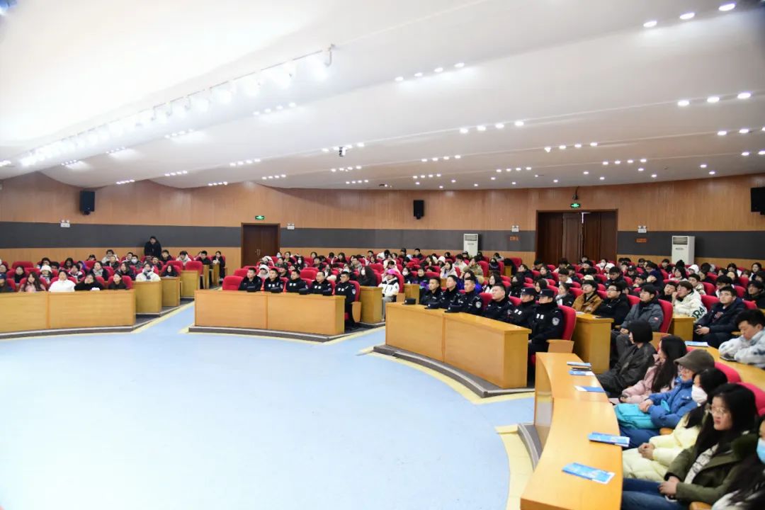 演练结束后,相关部门在图书馆报告厅开展了安全教育讲座,反恐大队韩林强作了反恐普法宣传教育,党委保卫工作部(保卫处)有关负责同志进行了寒假安全教育。