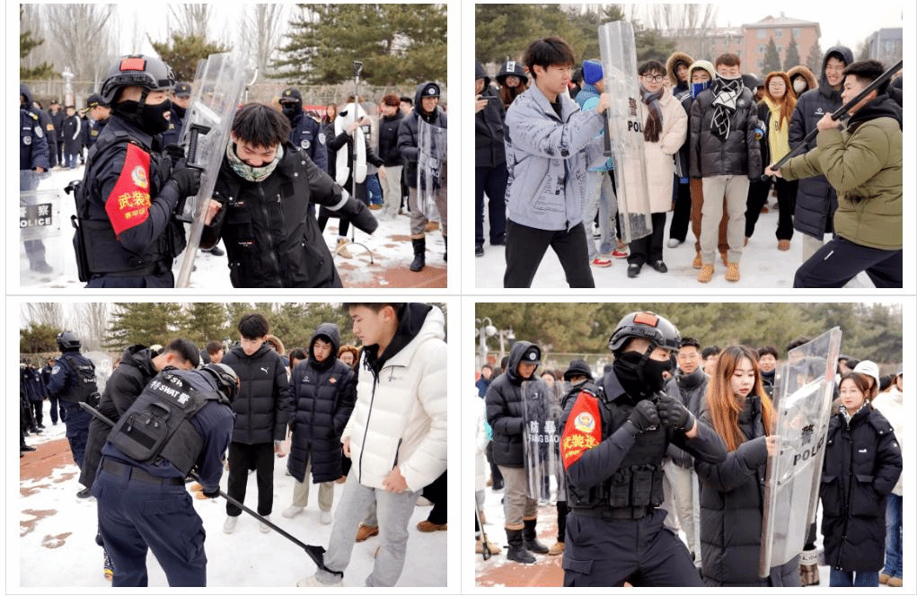 本网讯 为维护校园安全稳定,有效防范处置各类校园突发事件,提升警校联动处置突发事件的应急处突能力,12月29日,世界杯官网党委宣传部、党委统战部、党委学生工作部(学生工作处)党委保卫工作部(保卫处)联合驻校警务室、赛罕公安分局反恐怖和特巡警大队在赛罕校区进行了反恐应急演练暨安全教育活动。活动以演练为主,并向现场师生讲解了各类防暴器材的功能和使用方法。赛罕校区9个学院师生以及安管会全体成员参加本次活动。