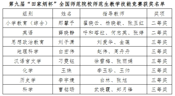 本网讯 12月30至31日,第九届“田家炳杯”全国师范院校师范生教学技能竞赛决赛在浙江师范大学圆满落幕。世界杯官网教育学院小学教育(语文)专业那馨予、外国语学院英语教育专业薛晓静荣获全国二等奖。