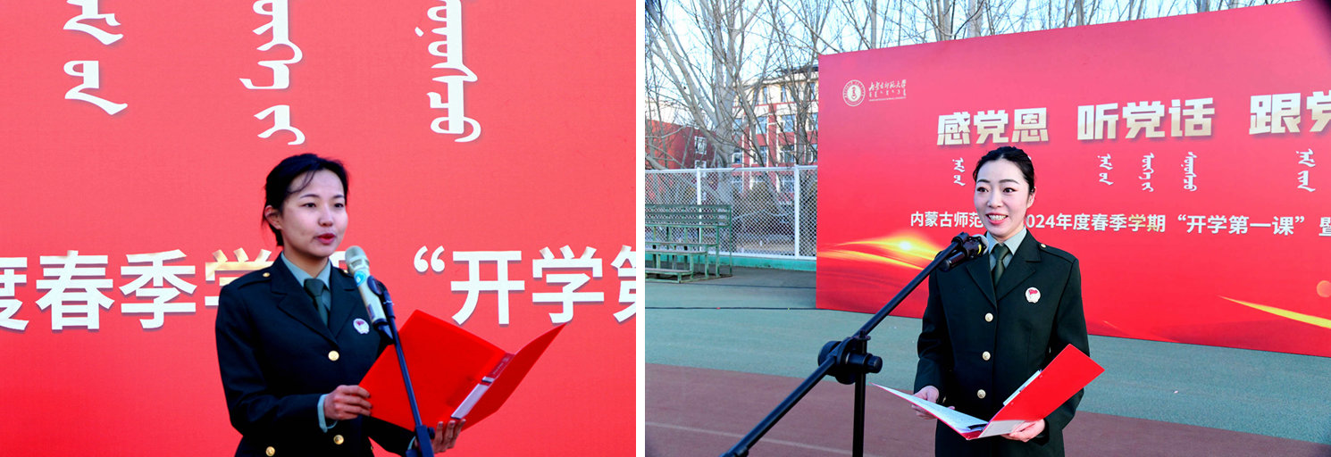 马克思主义学院2023级法学专业焦庆、文学院2022级汉语言文学一班杜冬梅在国旗下演讲,表达了当代大学生对祖国的热爱之情,作为中华民族伟大复兴的见证者和建设者,要树立爱国意识、规矩意识、责任意识,将青春融入党和国家的事业中,以饱满的热情和认真的态度迎接新学期的学习和生活,努力成长为有理想、敢担当、能吃苦、肯奋斗的新时代好青年,让青春在全面建设社会主义现代化国家的火热实践中绽放绚丽之花。