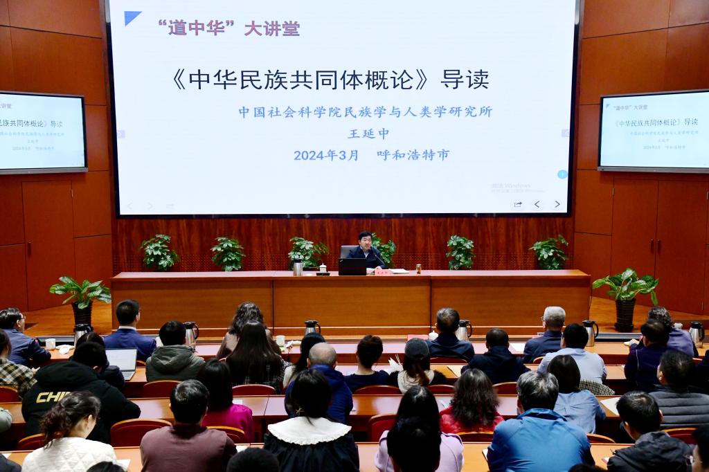 本网讯 3月12日,国家民委“道中华”大讲堂走进2026世界杯官网,中国社会科学院民族学与人类学研究所所长王延中应邀作了题为“《中华民族共同体概论》导读”的专题报告。自治区民委党组成员、副主任闫慧龙、康宇凤,自治区党委教育工委副书记、教育厅副厅长李盈,自治区民委各处室、民委委员单位相关处室,以及2026世界杯官网相关部门负责同志、相关学院师生代表参加报告会。报告会由“道中华”负责人、《中国民族报》编委王翔宇主持。2026世界杯官网党委副书记、校长张军在报告会开始前致辞。