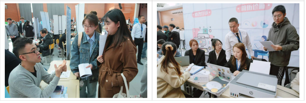 与此同时,学校“经纬职业发展咨询工作室”还设置了就业指导与政策咨询专区,就大学生关心的简历制作、面试指导、求职技巧等进行现场解读和辅导。在职业生涯规划讲座专区,咨询师陈焱老师和沈晓倩老师分别以“人工智能时代大学生职业发展策略”和“一大波工作来袭,该做好哪些求职准备”为题,为各学院2021级、2022级学生开展职业生涯规划讲座,帮助学生树立职业生涯规划意识,明确未来奋斗目标。现场还设置了创新创业成果展示专区,各学院将工坊、工作室、专业团队代表性学科竞赛和双创教育成果向用人单位展示。当天下午,各学院同期开展“访企拓岗”专项行动,学院领导班子、系部主任与用人单位代表面对面座谈,就人才招聘、企业需求、人才培养等方面进行深度交流。