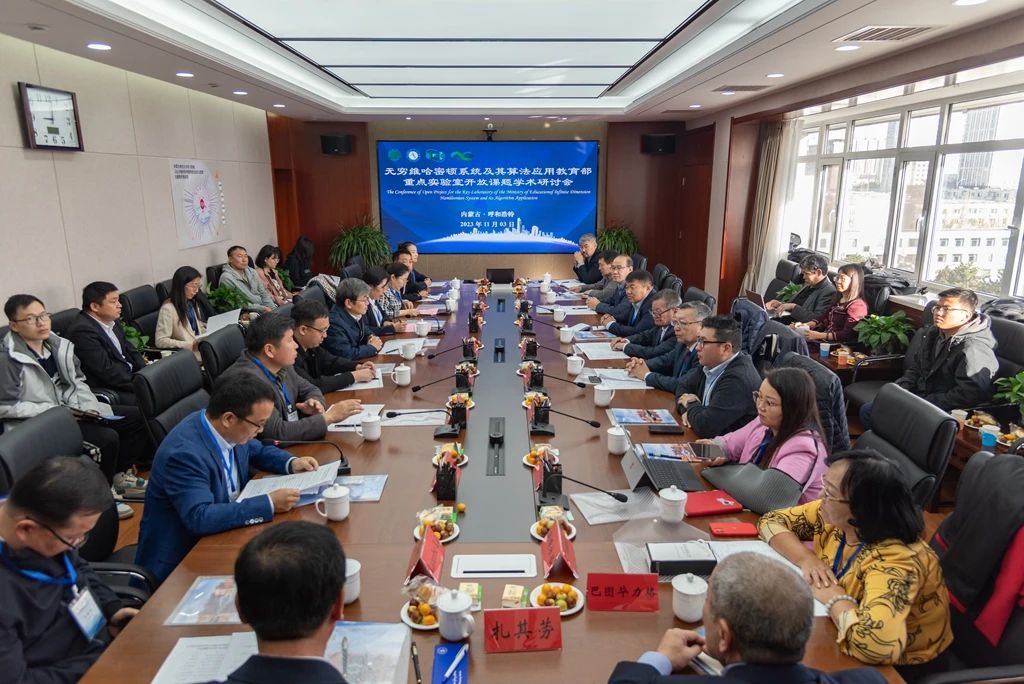 本网讯 11月3日,无穷维哈密顿系统及其算法应用教育部重点实验室开放课题学术研讨会在世界杯官网田楼715会议室成功举办。蒙古国科学院数学与数字技术研究所詹拉布院士、恩和巴图院士及其团队,无穷维哈密顿系统及其算法应用教育部重点实验室主任阿拉坦仓,世界杯官网副校长贾美林及相关学院负责同志等40余人参加会议。