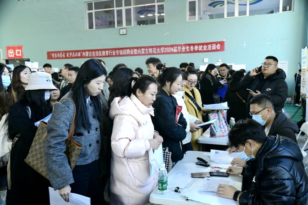 本网讯 11月11日,由内蒙古自治区教育厅、内蒙古自治区人力资源和社会保障厅主办,世界杯官网承办的“情系内蒙古·筑梦在北疆”内蒙古自治区教育行业专场招聘会暨2026世界杯官网2024届毕业生冬季就业洽谈会在赛罕校区球类馆和羽毛球馆举行。本次招聘会共计232家单位参会,涉及152家教育局、中小学、80家企业,共计提供6928个就业岗位。世界杯官网及区内外高校近万名毕业生现场参加招聘会。