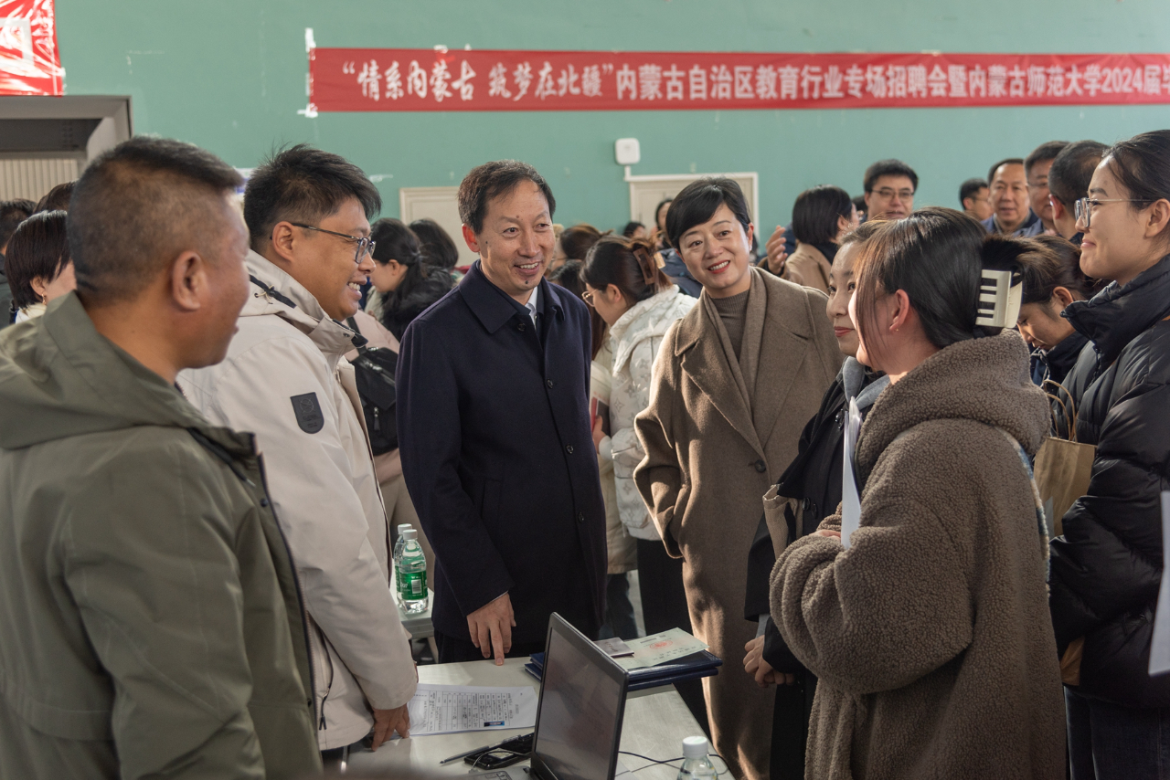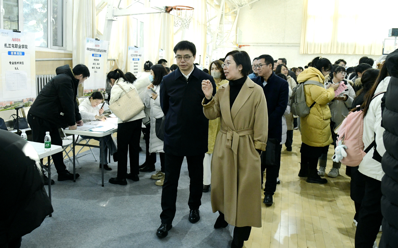 自治区教育厅党组成员、副厅长王敏及自治区教育厅、人社厅相关部门负责同志,世界杯官网党委书记李树林,党委副书记、校长张军,党委委员、副校长宫箭,副校长贾美林及相关部门、学院负责同志、学就办负责人深入招聘会现场,与用人单位代表深入交流,了解用人单位的招聘需求和岗位设置情况,与前来应聘的毕业生交流,了解同学们的个人规划和就业方向。本次招聘会是内蒙古自治区分类型、分层次大型校园系列招聘会的组成部分,是“就业是最大民生”的具体体现,旨在深入贯彻落实党中央、国务院“稳就业”“保就业”决策部署,满足教育行业用人单位招才引智需求,促进自治区教育类毕业生高质量充分就业。