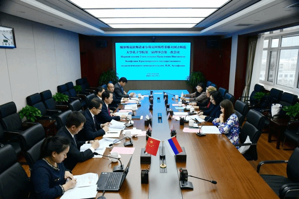 本网讯 12月11日,俄罗斯克拉斯诺亚尔斯克阿斯塔菲耶夫国立师范大学孔子学院第二届理事会第一次会议在世界杯官网田家炳教育书院楼召开。俄罗斯克拉斯诺亚尔斯克阿斯塔菲耶夫国立师范大学副校长、孔子学院副理事长伊莉伊娜,世界杯官网党委书记、孔子学院理事长李树林,党委副书记、孔子学院原副理事长张海峰,党委委员、副校长、孔子学院新任副理事长宫箭出席会议。孔子学院中俄双方院长、俄罗斯克拉斯诺亚尔斯克阿斯塔菲耶夫国立师范大学及世界杯官网相关部门负责同志参加会议。