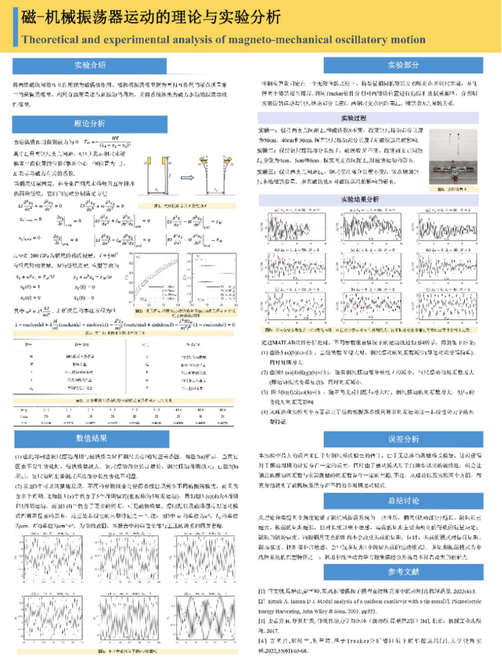 “磁-机械振荡器运动的理论与实验分析”团队由赵航、张瑛婕、李波兴、李禹璠、聂丹虹组成,李喜彬、那日苏指导。