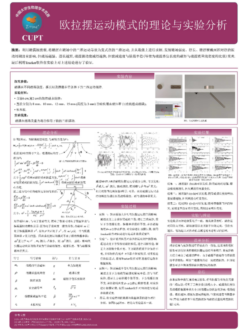 “欧拉摆运动模式的理论与实验分析”团队由李雅楠、焦俊杨、姜梦媛、赵宇峰组成,李喜彬、那日苏指导。