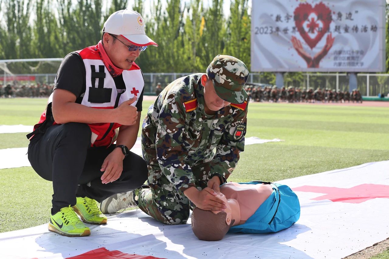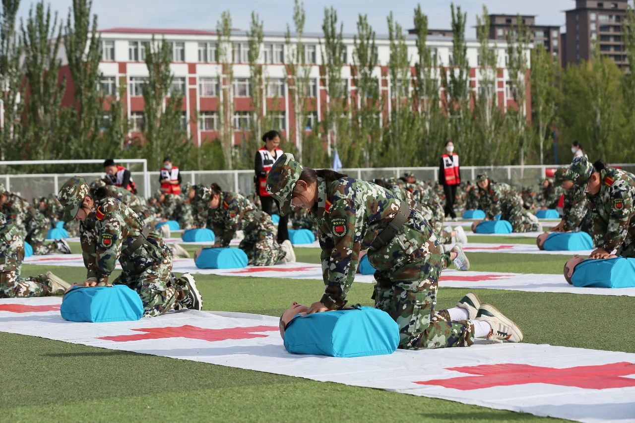 自治区红十字会工作人员现场为2023级新生进行了应急救护知识讲解和演练。活动中,同学们积极参与,在学与练中上了一堂生动的生命安全教育课。