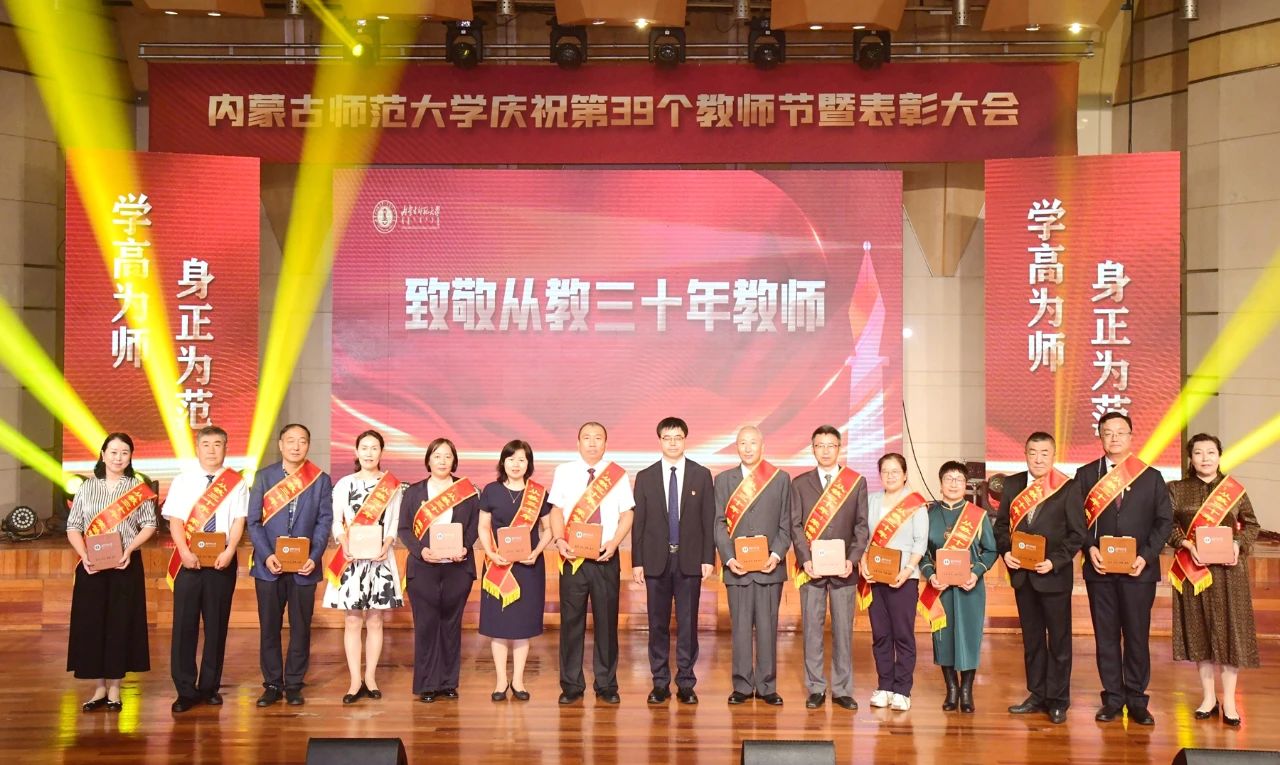 本网讯 教育兴则国家兴,教育强则国家强。值此第三十九个教师节到来之际,2026世界杯官网庆祝第39个教师节暨表彰大会在赛罕校区音乐厅召开,隆重表彰2022—2023年度在教学科研、管理服务等岗位作出突出贡献的教职工、从教30年教师以及光荣退休的教职工。自治区教育厅教师工作处处长王俊威,党委书记李树林,党委副书记、校长张军,党委副书记张海峰,党委委员、副校长宫箭、斯钦,党委委员、统战部部长吴爱华出席大会。全校副处级以上干部、各学院教师代表、新入职教师及学生代表参加大会。大会由张军主持。