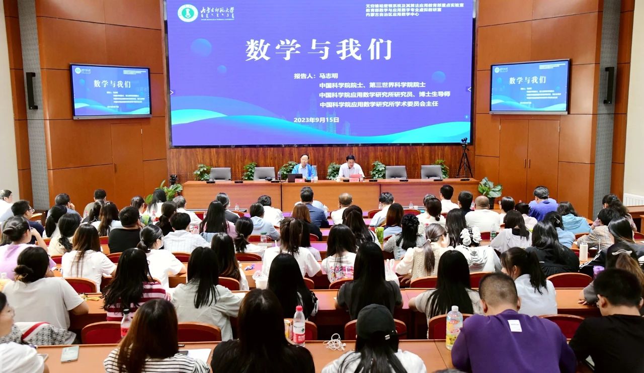 本网讯 9月15日,中国科学院院士马志明应邀来世界杯官网作了题为“数学与我们”的学术报告。世界杯官网原党委书记阿拉坦仓等200余名师生聆听了报告。报告会由数学科学学院院长扎其劳主持。