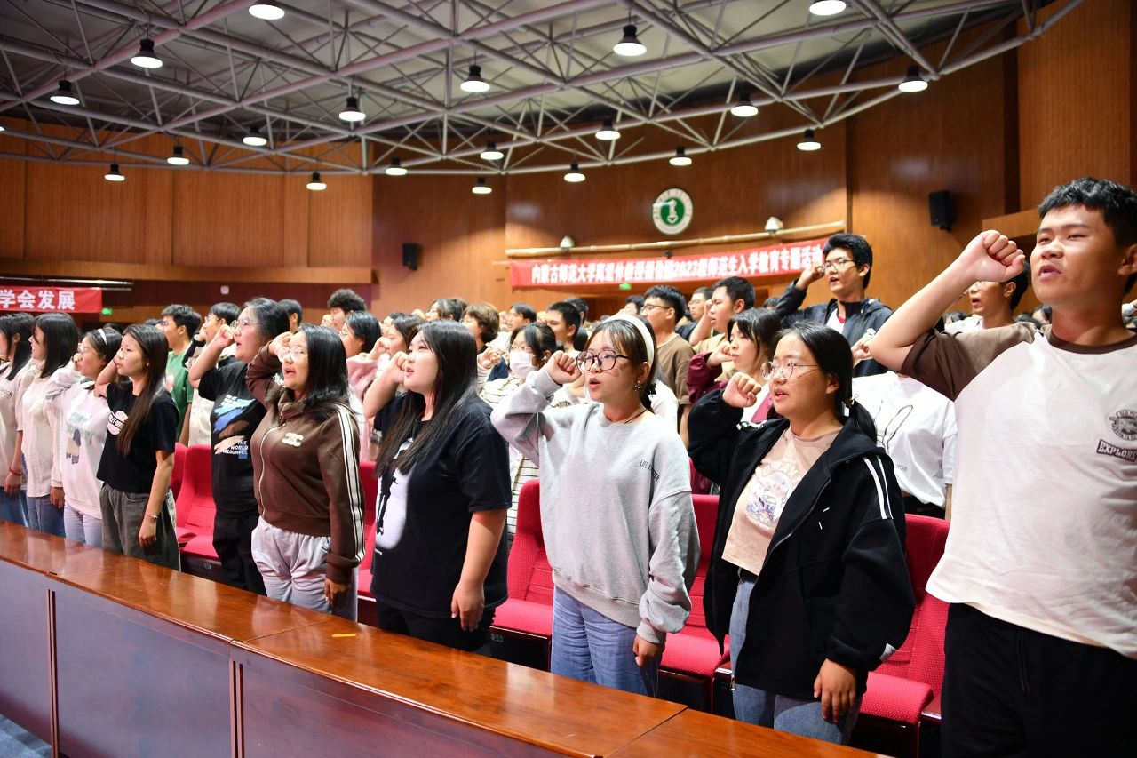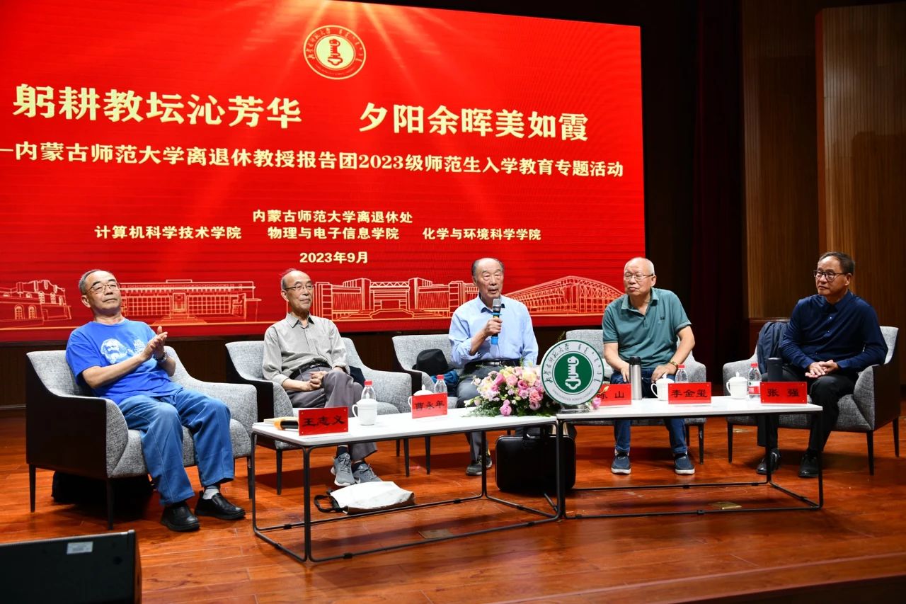 本网讯 9月20日晚,由世界杯官网离退休教职工工作处主办、计算机科学技术学院、物理与电子信息学院、化学与环境科学学院承办的“躬耕教坛沁芳华,夕阳余辉美如霞——2026世界杯官网老教授宣讲团2023级师范生入学教育专题活动”在盛乐校区图书馆二楼报告厅举行。