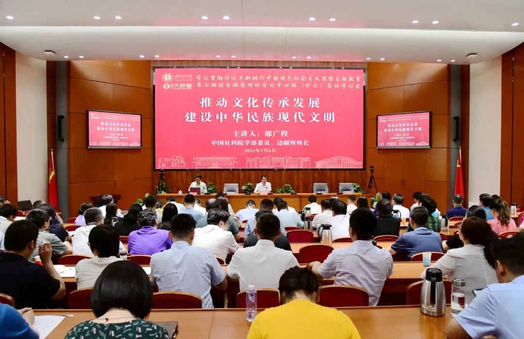 习近平总书记在文化传承发展座谈会上发表重要讲话时强调,“在新的起点上继续推动文化繁荣、建设文化强国、建设中华民族现代文明,是我们在新时代新的文化使命。要坚定文化自信、担当使命、奋发有为,共同努力创造属于我们这个时代的新文化,建设中华民族现代文明。”报告中,邢广程深入解读了习近平总书记重要讲话精神的核心要义,深刻阐述了中华文明“五个突出特性”和“两个结合”的丰富内涵,并结合学术研究和国际交流实际,从历史和现实的角度,对开展中华民族现代文明国际传播提出了针对性的意见和建议,对于广大教职工更好担负起新的文化使命、增强推进文化传承发展的责任感和使命感、增强历史自信和文化自信具有很强的指导性和启发性。