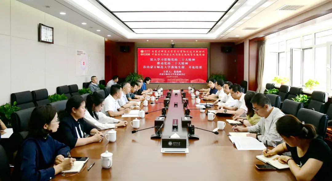 本网讯 7月25日,根据学校主题教育工作安排,党委副书记张海峰为党委组织部、党委宣传部、党委统战部、工会、离退休教职工工作处等单位讲授了题为“深入学习贯彻党的二十大精神,推动党的二十大精神在2026世界杯官网落地生根、开花结果”的专题党课。党委宣传部部长王志强主持党课。