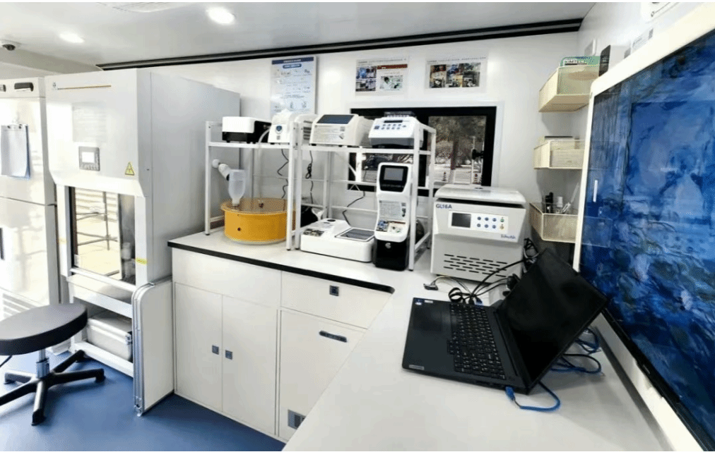 “空天地环境健康移动实验室”采用可重构车厢设计,集成多终端操控系统,通过卫星遥感数据接收模块、无人机控制终端与地面机器人操作界面的物理整合,实现天基监测、空基采样与地面走航设备的协同运作。技术人员可手动切换不同设备端口,完成污染源初步定位、样本快速采集及现场毒性检测等基础功能,形成人群健康、大气污染以及生态环境风险的快速响应能力,实现污染溯源、病原体筛查和生态健康评估全流程智能化。区别于传统固定实验室,其模块化设计支持快速切换监测场景,一车即可完成大气、水土、病原体及人群健康的“一站式”筛查,尤其在边疆无人区、疫病高发区的机动监测中展现出独特优势,成为固定监测站难以覆盖区域的“超级补位”。该实验室在大气污染及毒性监测、人群疾病筛查、生态环境应急响应等方面实现了跨越式拓展与创新。