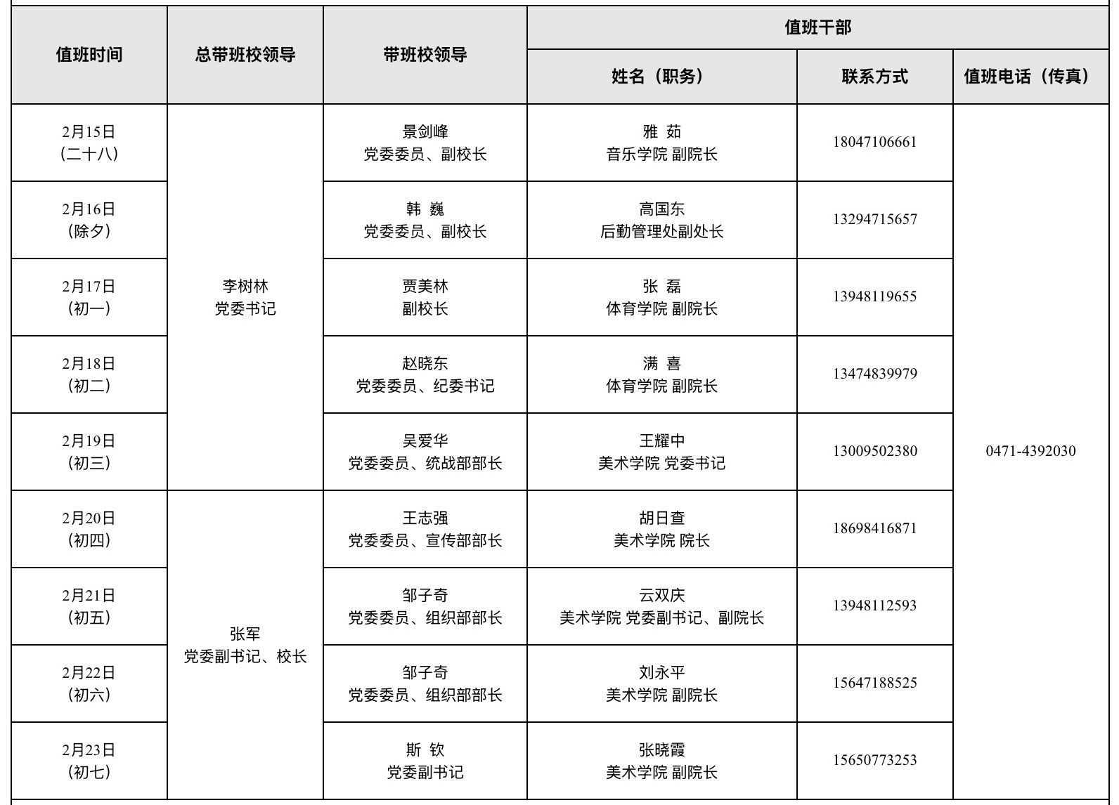 5.学工系统总值班电话:4392411(赛罕校区),7383466(盛乐校区)。