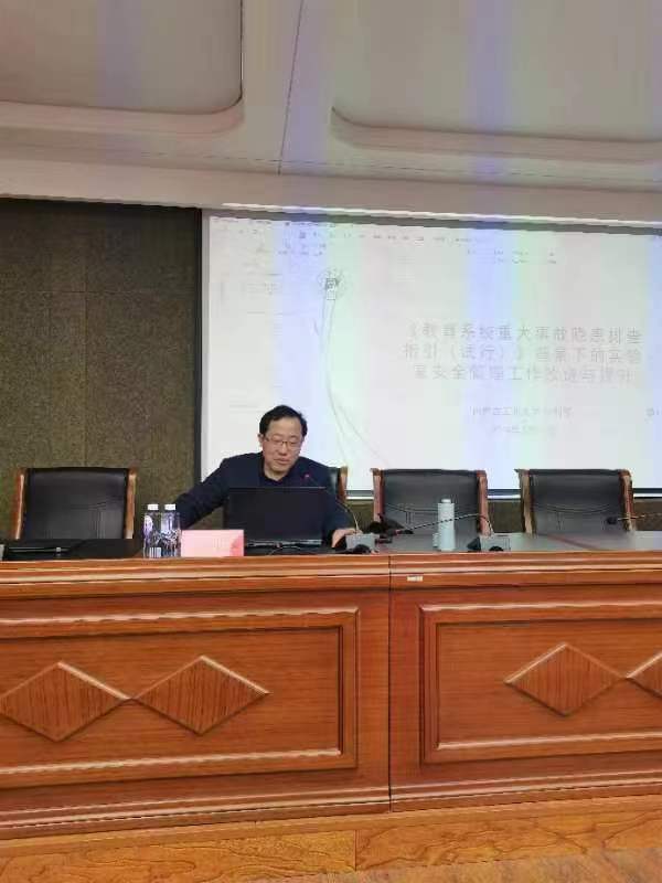为切实增强师生实验室安全意识,加强实验室安全教育,贯彻落实《全区教育系统安全生产治本攻坚三年行动实施方案(2024-202年)》等相关文件要求,3月19日下午,世界杯官网在赛罕校区文史楼一号会议室举办实验室安全教育培训讲座,邀请内蒙古工业大学实验管理中心(测试中心)主任李利军老师作“实验室安全工作在《教育系统重大事故隐患排查指引(试行)》背景下的改进与提升”主题报告。讲座由科技处(社会科学处)副处长周丹丹主持,各学院分管院长、实验中心主任和副主任、各实验室负责人、部分研究生参会。