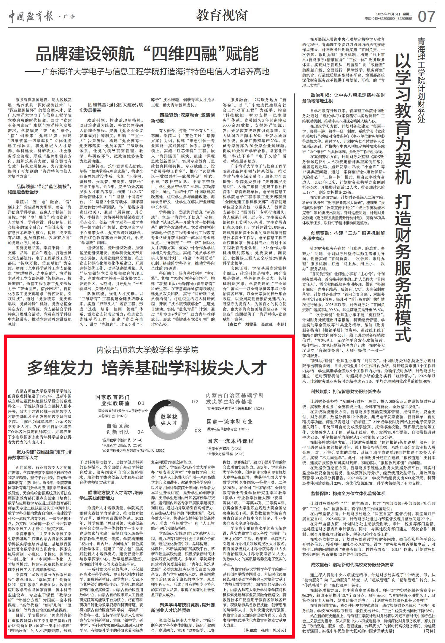 《中国教育报》2025年11月5日第07版以《多维发力 培养基础学科拔尖人才》...
